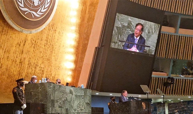Kolombiya, 2026 ve 2027 yıllarında BM Güvenlik Konseyi'nin daimi olmayan üyesi olacak.Petro, barış gücüne ilişkin kararın, tüm ülkelerin temsil edildiği Genel Kurul'da alınması gerektiğini, Güvenlik Konseyi'nde "ABD'nin her türlü barış fikrini engellediğini" vurguladı.Bugüne kadar çok sayıda ülke BM Güvenlik Konseyi'ne acil ve kalıcı ateşkes çağrısı yapan kararlar sundu.ABD, veto hakkını kullanarak bu kararları sürekli olarak iptal etti.Cumhurbaşkanı ayrıca, İsrail'in Gazze ablukasını kırmayı amaçlayan bir vatandaş girişimi olan Küresel Sumud Filosu'na da destek verdi.Uluslararası koalisyon, 70 gemide 44 farklı milletten 350 kişiyi taşıyor. Bu kişiler arasında 6 Kolombiyalı da bulunuyor.Petro, bir diğer paylaşımında, "Yaşasın özgür Filistin. Özgürlük Filosu'na tüm desteğimizle" ifadelerini kullandı.2023 yılında başlayan Gazze soykırımı, 1948 yılında İsrail devletinin kurulmasıyla başlayan İsrail-Filistin çatışmasının bir parçasıdır.Gazze Sağlık Bakanlığı'na göre, Ekim 2023'ten bu yana 62 binden fazla kişi öldürüldü. Bilim insanları, öldürülen Filistinlilerin yüzde 80'inin çoğunlukla kadın ve çocuklardan oluşan silahsız siviller olduğunu tahmin ediyor.Petro, vahşetlerle ilgili olarak şunları ekledi: "Bu soykırımı kabul eden herkes insanlık dışıdır; hayvanlar bile böyle bir şey yapmaz. Onlar soykırımın basit bir suç ortağı, yeryüzünün manevi bir dışlanmışıdır."Petro hükümeti, kömür ihracatının yasaklanması ve İsrail ile diplomatik ilişkilerin kesilmesi gibi son dönemde alınan önlemlerin ardından, dünya çapında Filistin'in en sadık destekçilerinden biri olarak ortaya çıktı.